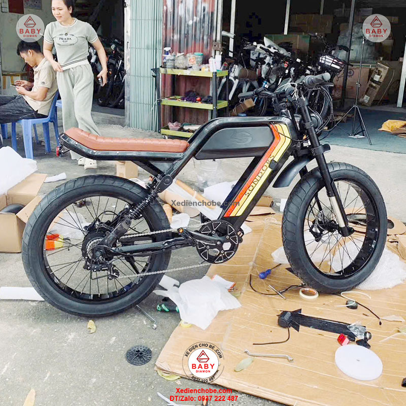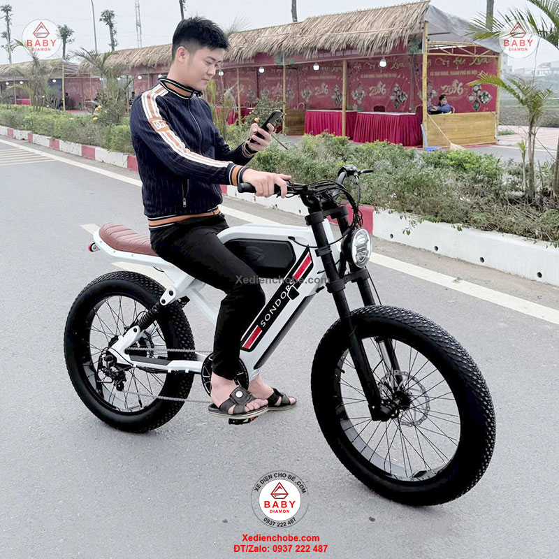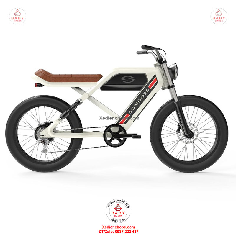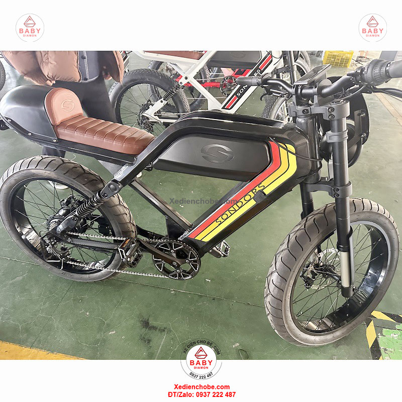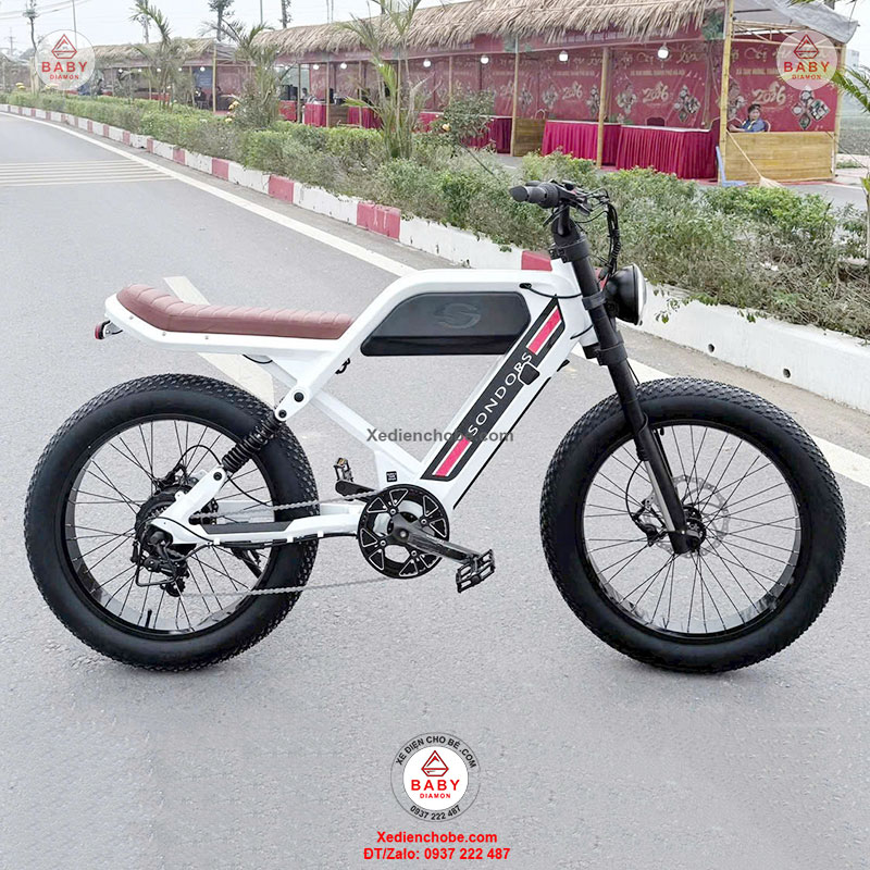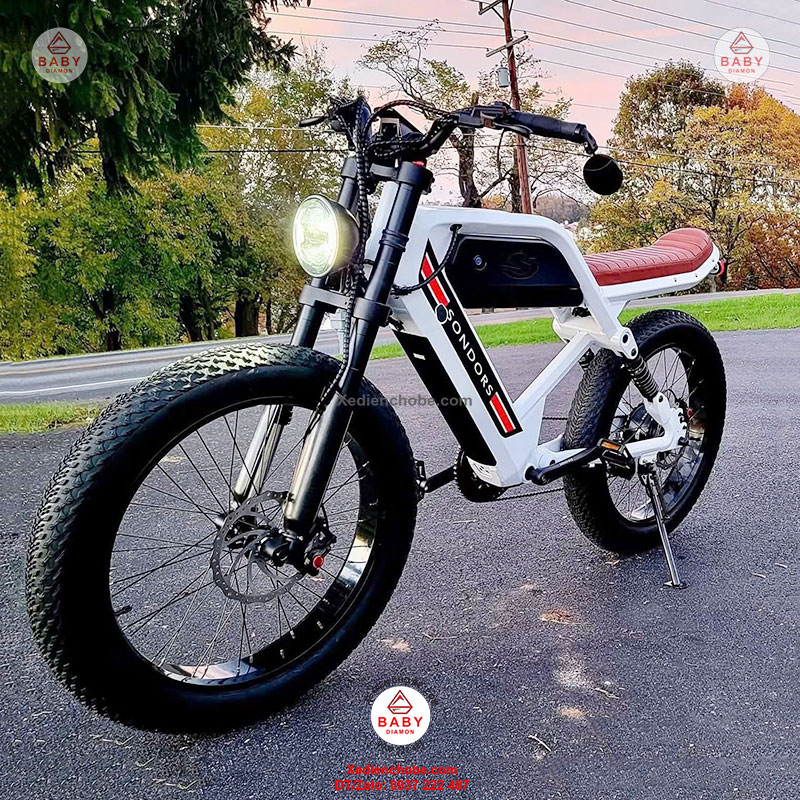 Xe đạp điện trợ lực Sondors Madmors, thương hiệu đến từ Mỹ, được thiết kế kiểu dáng mạnh mẽ, hầm hố, giống mô tô phân khối lớn, đẳng cấp thích hợp cho người cân nặng dưới 150 kí, xe hoạt động tốt nhất 40-70 kg, chế độ tự lái bằng bàn đạp và trợ lực điện, giúp bạn vừa chạy xe vừa tập thể dục