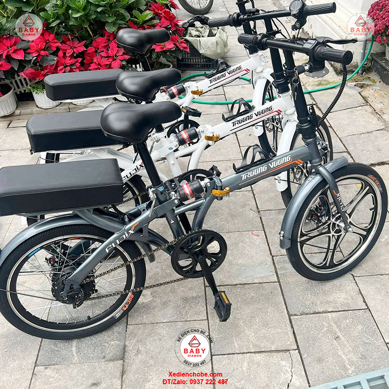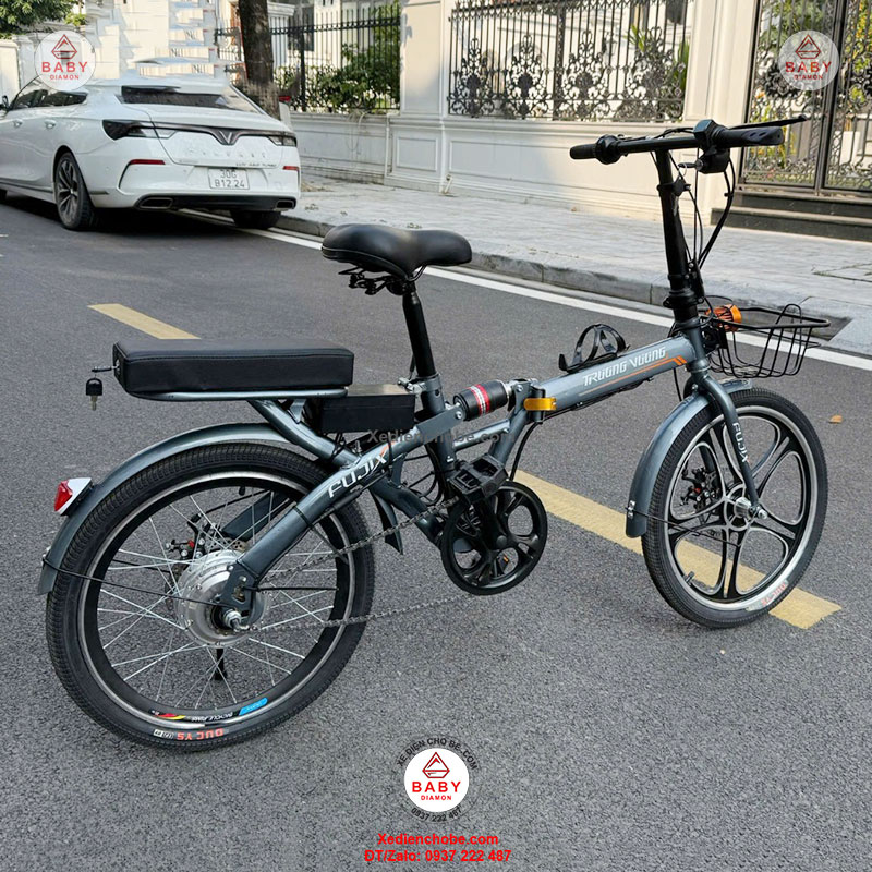 Xe đạp điện trợ lực gấp gọn Trường Vương Fujix, Pin rời, thương hiệu Việt, có giảm sóc, được thiết kế kiểu dáng nhỏ gọn, thanh lịch, gấp gọn bỏ cốp ô tô đi mọi nơi, đẳng cấp phù hợp cho các cô, các chị, cho người cân nặng dưới 120 kí, xe hoạt động tốt nhất 40-70 kg, chế độ tự lái bằng bàn đạp và trợ lực điện, giúp bạn vừa chạy xe vừa tập thể dục